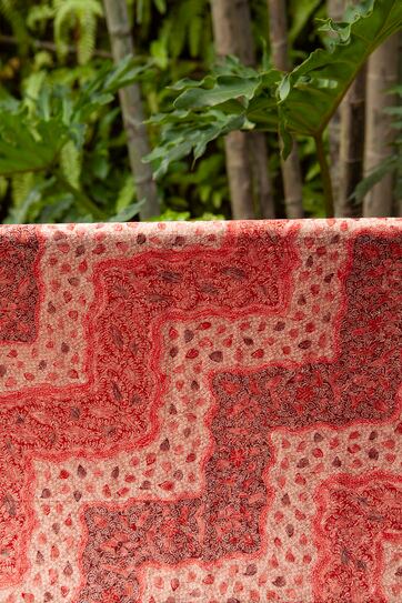 ※すべての行程が手作業です。型押し、手描き、手染めのため、ムラなどがあります。手織りの場合は透けて見える部分、真っすぐでは無い部分があります。手作りのぬくもりを、その風合いを楽しんで頂ければ幸いです。